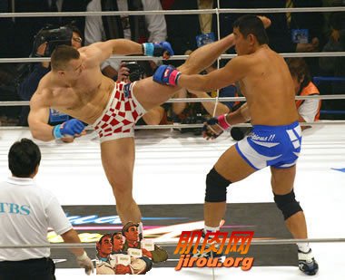 ![]() 很多现代格斗家的训练方法做到了真正的'返璞归真'. 出了复杂的机械之外,他们发现,大次数的全身运动是模拟实战的法宝!而恰恰是日常生活中的许多动作,能让他们的体能达到巅峰造极的状态.下面就介绍几种全身锻炼的方法!下次 举例: 1. 拉雪橇: 其实只要是用绳子拖曳重物就可以(人也可以哦!), 同时快速的过程中肩膀, 腿部和腹部都会得到锻炼,让普通的长跑变成了地狱! 试试把50KG的杠铃片拖上1000米吧! 绝对会让你大呼过瘾 2. 砸铁锤: 拿一个卡车轮胎(废弃的就可以!) 用适合自己力量的铁锤,用力抡向它! 把它当作自己的对手! 这个动作可以让肩膀和背部得到巨大的折磨! 试试左手一百下, 右手一百下(要保持平衡和控制, 最佳的训练结果巧力和爆发力的锻炼) 3. 甩哑铃: 不知道大家有没有见过铃壶? 这是俄罗斯运动员锻炼的法宝! 用单或者双手握住铃壶在体前用臀部的力量将其甩起(不脱手),然后自然地让铃壶党到胯下体后. 如果各位没有这种俄罗斯熊怪们(比如Fedor)的专门器械,也可以用哑铃代替! 不过这对握力要求可能更加高一些. 一个建议:这招可以锻炼臀部的爆发力,在推搡和防治抱摔的时候非常有用! 如果想锻炼握力,可以在哑铃的中间绑上布或者毛巾,因为握的东西越粗,对手臂的摧残就越大,哈哈!可以尝试左右手各30个,各做3组.如果觉得轻松了可以加重量.不过一定要注意, 和任何负重锻炼一样,下背部要保持挺直和适度的紧张,这样可以锻炼下背的耐力,反之则会造成劳损,谁都不愿意看到这种情况,所以千万要注意. 4. 老汉推车: 用一辆2轮手推车, 里面可以装上重物(比如杠铃片,甚至砖头!最简单就是最有效的),然后推上坡...这招可能对大部分人来说不实用.因为这项锻炼需要一部那种工地上运水泥的手推车, 需要特殊的场地,并且会引人注目.这项运动主要锻炼肩膀的耐力和腿部,特别是肩膀,这会让你长时间地举起双手防御更加轻松! 5. 翻轮胎: 拿一个大卡车的轮胎, 双手抓住底部开始发力, 翻上一千米, 看你晕不晕! 其实这项运动我已经在我一个同学组织的社团活动里面看到了, 他们搞大力士比赛, 比翻轮胎的速度. 可以锻炼人的心肺和全身肌肉. 6. 毛巾引体: 本能格斗吧友们是不是传统引体已经做得想打盹了呢? 试试看, 挂两块毛巾(或者粗的麻绳)在单杠的左右两边, 紧紧握住毛巾, 开始引体! 这项锻炼对小臂和手上的肌肉锻炼极大,因为你要死命抓住毛巾不掉下去. 这可比坚固的铁棒难抓多了! 想练出一双把对手掐得想哭的熊爪,就靠它了! 这是我阅读了许多网上各个著名格斗家全身训练的一些心得, 希望能给各位一点灵感和帮助. 我自己试过甩哑铃和拉人跑(用质量好一点的跳绳就可以), 对臀大肌锻炼真的很大. 其实最重要的一个道理是, 不怕没器械, 就怕没点子! |