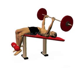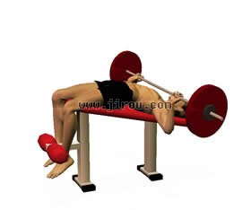 •斜躺在卧推凳子上。 •脚部抓牢地面。 •杠铃比肩部略宽。 •固定好腿部,腰部向上微挺。