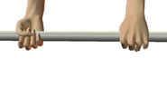 把手交替的抓住杠铃。这样能更牢固更容易的做硬拉。