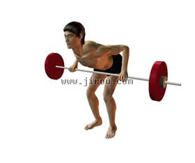 保持你的俯身的姿势提起杠铃。