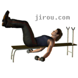 仰卧躺在长凳上,双腿提高,能让负荷更加集中到二头肌。也能锻炼腹肌。