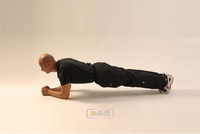 接着换成手肘撑地,一样身体头、背、臀部保持一直线,手肘位置位于肩膀正下方。