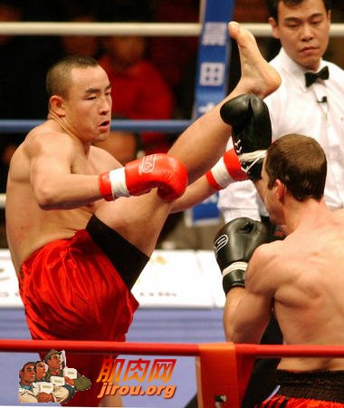 下面训练方案来自西安体育学院的武术系散打专业教案 下面是西体的成绩: 第十届全国运动会武术比赛散打预赛于2005年5月15日已结束。我院散打队9名参赛队员在教练赵学军的带领下,发扬顽强拼搏的精神,赛出了风格,发挥了水平,共有8人打入决赛,获得了3枚金牌;1枚银牌;2个第五和1个第七名的优异成绩。其中秦力子获女子52 kg级冠军;那顺格日勒、宝力高分别获男子87.5kg和77.5kg级冠军;巴特尔获男子77.5kg级亚军;赵紫龙、青格乐获第五名;巴达楞贵获第七名;李原进入决赛。 注:秦力子、宝力高、赵紫龙、青格乐、巴达楞贵现为我系2002级学生。 正文: 力量是指人体神经肌肉系统在工作时克服或对抗阻力的能力。散打是以击中、摔倒对方得分的多少来判定胜负,击中、摔倒对方均需要力量,具体表现在上肢拳法的打击力量、下肢腿法的打击力量、摔法的力量、承受击打的抗击力量等四个方面。 散打需要各种力量素质有较高的综合水平,而不是单一地发展某种力量素质。 (一)最大力量训练 1 、通过提高中枢神经系统支配肌肉工作的能力来发展最大力量功能: 能够有效地提高最大力量却不增加肌肉体积。散打比赛按运动员的体重分级进行,增大力量而不增加体重尤为重要, 训练方法: ① 肌肉功张弛适度的训练。 运动员在发出动作之后回收的过程中,或者动作与动作之间的间歇期,使肌肉尽量保持合理的放松,有利于肌肉迅速补充能力物质,有利于神经调节机制得到缓冲,有利于减缓对抗肌、协同机的负面影响,从而使动作能够发出最大力量。 ② 肌肉做功刺激强度的训练。 在训练过程中,要求运动员用最快的速度和最大的力量完成每一个动作,保证神经系统的兴奋性,保证参与工作肌肉的刺激强度,从而提高训练质量,保证运动员最大力量的增长。 ③ 肌肉做功方式的训练。 完成每个动作要充分调动大肌肉群做功,否则,不利于充分调动全身能调动的主动肌、协同肌参与收缩做功。 例如: 踹腿,大腿要尽量屈膝回收并推动小腿向前,而不是小腿带动大腿向前; 冲拳,不能只让上肢肌群做功,必须利用腿部和腰部的力量。 ④ 肌肉做功增长距离的训练。 力量大小与肌肉做功的距离有关。在不产生动作预兆的前提下,应尽量增长击打距离。增长距离主要靠步法的调整和身体姿势的调整。 ⑤ 动作击打力点准确的训练。 在平时训练中,要保证击打的部位与动作力量最高值的力点恰到好处,以充分发挥击打力量。 ⑥ 以气催力增大力量的训练。 使呼气与击打动作协调一致,以增大击打力量。 2 、通过增加肌肉横断面积来提高最大力量 ( 1 )最大力量训练的要素 肌肉工作的方式: 散打运动员发展最大力量,应以克制性和退让性的动力性工作方式为主,辅之静力性工作方式。静力性练习是发展最大力量的有效手段之一,但在高水平运动员训练时,静力性练习量宜控制在最大力量练习总量的 10% 以下。 阻力的大小: 克服阻力的大小是最大力量训练的重要要素之一。 克制性力量练习可在最大力量能力的 50~100% 范围内变化; 退让性力量训练可在 70%~80% 至 120%~130% 范围内变动; 改善肌肉协调应采用极限负荷和次极限负荷;肌间协调的改善应选择极限重量的 50%~60% 。选择增大肌肉体积来发展最大力量时,采用的练习强度约为极限体重的 75~90% 。这种负荷重量可以使每组力量练习的肌肉工作强度与每组重复次数达到最佳组合。对于高水平运动员,静力性力量练习的重要只有达到极限重量的 70% 以上才会产生较好的训练效果,达到极限重量的 90%~100% 才能获得最佳训练效果。 练习动作的速度: 无论采用哪种方法发展最大力量,都必须保持较慢的动作速度。 原因: ① 动作速度过快会使练习效果向发展速度力量的方向转移。 ② 在进行向心力量练习时,如果动作速度太快,力量的最大发挥或接近最大的发挥只 能出现在动作的开始阶段,而肌肉工作的其他阶段因器械的惯性作用却不能获得应有的负荷。 采用改善神经调节机制途径发展最大力量,中等动作速度的练习效果最佳,每个动作的速度为 1.5~2.5 秒钟。 为了防止应慢速的最大力量练习而导致快肌快速收缩能力的降低,要把慢速的最大力量 练习与速度练习结合起来。 完成每组练习的时间: 改善肌肉协调的最大力量练习,通常每组练习的重复次数为 2~6 次,完成一组练习的约需 3~15 秒钟; 改善肌间协调的最大力量练习,每组重复次数可达 15~20 次,每组所需时间约为23~50 秒钟; 若以增大肌肉体积提高最大力量时,则每组练习的重复次数为 6~12 次的效果最好,一组练习需 18~60 秒钟。 组间休息的时间: 必须保证运动员无氧非乳酸能源和机体工作能力的基本恢复。发展最大力量的组间间歇的时间较长,一般为 2~6 分钟。 练习的组数: 改进肌内协调和肌间协调的最大力量练习,其重复的练习组数为 2~6 组; 增大肌肉体积的最大力量练习,其练习的组数为 3~10 组。 ( 2 )发展最大力量的常用方法 1 )重复法: 特点是负荷大小随肌肉力量的增大而逐渐增加。 负荷特点: 负荷强度为 75%~95% ,每组重复次数为 3~6 次,组数为 6~8 组,每组间歇时间为 3 分钟。 运用: 此法适用于训练的各个时期和阶段,有利于改进用力的协调性,能迅速而有效地提高肌肉力量。 2 )强度法: 特点是采用最大负荷安排。练习时逐渐达到用力极限,然后继续用中上强度的负荷量,直到机体对刺激产