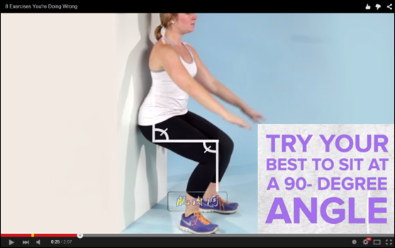 O 背部贴直靠墙,脚往前站约2-3步,脚跟墙面的距离为膝关节弯曲呈直角时,膝盖不超过脚掌为准 O 弯曲膝关节与髋关节,保持臀部和背部靠在墙上 O 大腿与地面平行,与小腿垂直 O 撑住5-10秒,恢?原姿势 3. 仰卧起坐: 是熟知的锻炼腹部肌肉的基础动作。在大多数人国小中学时期就开始作仰卧起坐,可能觉得没甚么好学的做就对了!然而现在已经有许多运动学者表示仰卧起坐潜在许多危险性:如因弓背导致颈椎受伤,不当的施力过度压迫腰椎,甚至曾经在前年发生颈部血管爆裂。从小未真正注意仰卧起坐的正确性与累积数十年的错误姿势,要校正回来不是件容易的事情! 错误示范