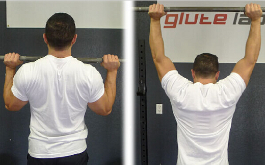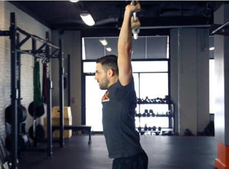 此外,站姿的过顶推举可以发展腹部、下背、臀部和大腿的肌力和稳定。花时间加强你的过顶推举也会增加你握推的肌力,因为过顶推举让你肩膀的稳定增加了。