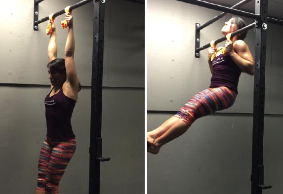 将毛巾穿过横杠,双手抓住毛巾,手臂自然伸直,保持上背肌群紧绷,然后进行引体向上的动作!