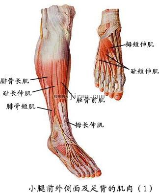 也比较复杂,分为前群、外侧群和后群。前群多为足的伸肌和内翻肌,后群多为足的屈肌和内翻肌,外侧群为足的外翻肌。