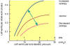 (四)心泵功能的贮备 前已提到,一般常人与优秀耐力运动员在静息状态下的心输出量并无差别,即使某些轻度心脏疾患的病人,静息时的心输出量与健康人也无明显差别。所以,评价一个人心泵功能的强弱,主要应看其心泵功能的贮备。 所谓心泵功能的贮备是指个人在体力活动中,所能达到的最大心输出量与静息心输出量之差。换句话说,心泵功能贮备(或称心力贮备)是指心输出量随机体代谢需要而增加的能力。 心脏的贮备能力取决于心率和搏出量可能发生的最大的变化程度。 研究表明,训练对个体 HRmax无影响,但训练能使静息心率降低,因而增大心率的贮备,动用心率贮备是心输出量调节中的主要途径,充分动用心率贮备可使心输出量增加1.5—2.0倍。 但是,应该想到,当心率过快时,心室舒张时间大大缩短,心室充盈量减少,从而使每搏输出量减少。我国学者研究发现, 男大学生心率超过每分147次,女大学生超过每分138次时, SV即趋向减少;但由于心率的增加可以掩盖 SV的下降,并仍表现出 CO的增加。只有当男大学生心率超过每分180次,女大学生心率超过每分170次时,才使 CO趋向减少。 最大搏出量时的心率称为心搏峰,男大学生的心搏峰约在每分125次左右,女大学生的心搏峰约在每分120次左右。 搏出量是心室舒张末期容积与心室收缩末期容积之差,而心室舒张末期容积和收缩末期容积都有一定的贮备量。比较起来,舒张期贮备比收缩期贮备要小得多,静息状态时心室舒张末期容积为145ml,由于心室不能过分扩大,一般最多只能达到160mI左右,所以舒张期贮备只有15ml左右;心室收缩未期容积通常约为75ml,当心肌收缩功能增强,心室收缩末期容积可以减少至20ml,故充分动用收缩期贮备可使每搏输出量增加55一60ml。人体剧烈运动时,由于交感肾上腺系统的活动加强,从而动用心率贮备和收缩期贮备使心输出量增加(图6—8)。