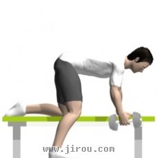 肩膀弯曲到平躯干位置。保持手臂稍微弯曲。返回。