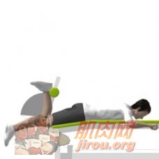 俯卧趴在腿屈伸训练器上,单腿放在杠杆下,膝盖刚好位于训练器长凳一端。双手握住拉手。