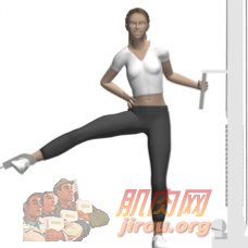 站在低位拉力器一侧。靠近的脚上固定好拉力器。另外一只脚直立,并手扶好杠杆。