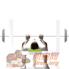 平躺在凳子上,手肘接近躯干,双手住杠铃。