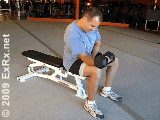 1. 双手反握(手心向上)杠铃或哑铃,握位与肩同宽,双膝跪在地板上,面对长凳的横边,或采用坐姿;小臂放在长凳上,手在长凳另一侧下垂;小臂不动,弯屈手腕,向地面下低杠铃或哑铃。将杠铃或哑铃停止在你不移动小臂尚能将将持住重量的手位。 2. 稍稍停顿,然后将杠铃或哑铃朝你的小臂缓缓屈起,能屈多高就屈多高;再稍稍停顿,然后慢慢下低杠铃或哑铃,回到起始位置。
