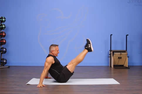 坐姿并拢,双手分开支撑在身后两侧,第1拍时,双腿曲膝抬起,大腿与地面成90°,脚心向外,上身后倾。第2拍时,双腿伸直向上,与地面成90°,脚心向上。此动作反复做10次,最后做第2拍动作时停10秒钟。