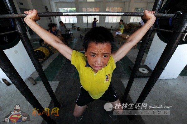 虽然很苦,但在这些举重娃娃的世界里,他们的想法简单而单纯:今天所有的汗水,都为一个冠军的梦想而挥洒。
