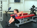 目标锻炼部位:肱三头肌,另外对胸大肌、前锯肌、背阔肌都有训练。 动作要领: