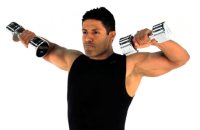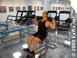 (4)拉力器侧平举(站姿/坐姿) :采用适中的重量,保证整个动作要做得非常正确,来达到雕刻三角肌中部线条的目的。