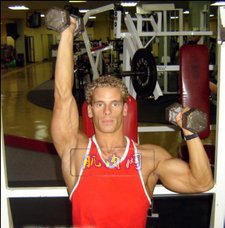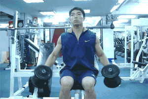 (6)哑铃肩上推举 :能很好地增加肩部的围度,大重量可以使肩部力量和围度飞速增长