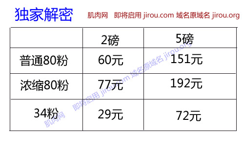 成本计算:普通80粉(0.067元/g)、浓缩80粉(0.085元/g)、34粉(0.032元/g)